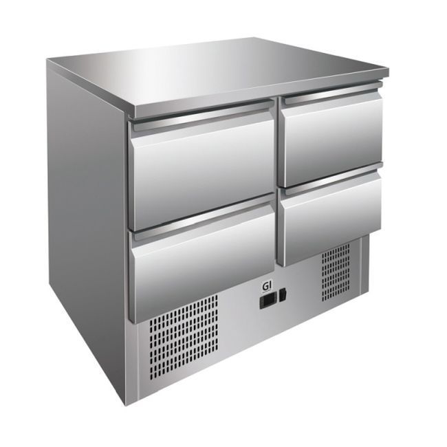 Gastro-Inox Kühltisch mit 4 Schubladen und Umluft aus Edelstahl 900x700x860mm