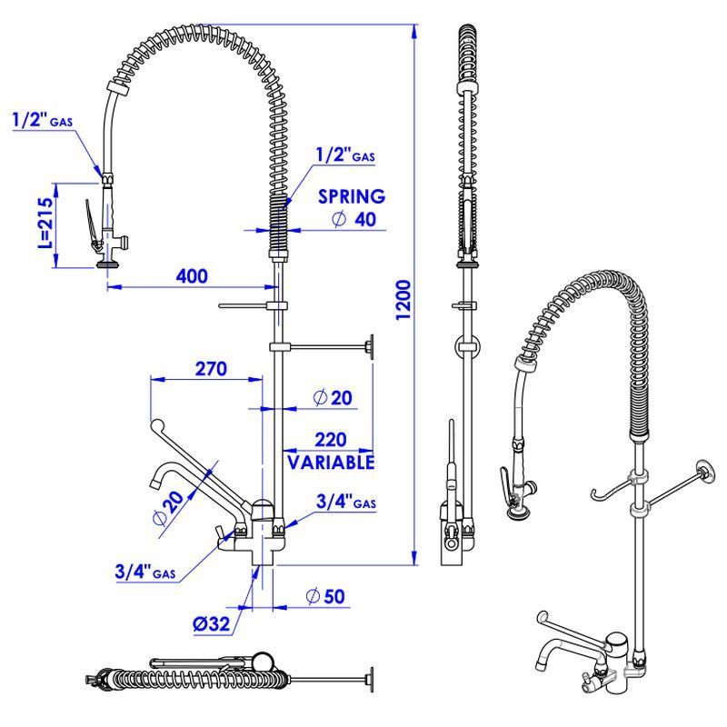 Gastro-Inox Vorspülbrause mit 1 Einhebelmischer Tischmodel