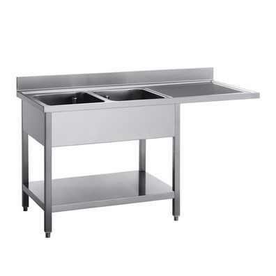 • Gastro M Spültisch Doppelbecken Links Platz für Geschirrspüler 160Cm Lang