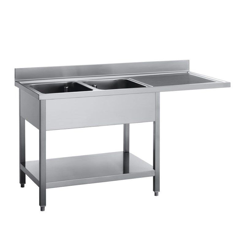 • Gastro-Inox Spültisch 2 Becken rechts Grundboden aus Edelstahl 1600x700x880mm