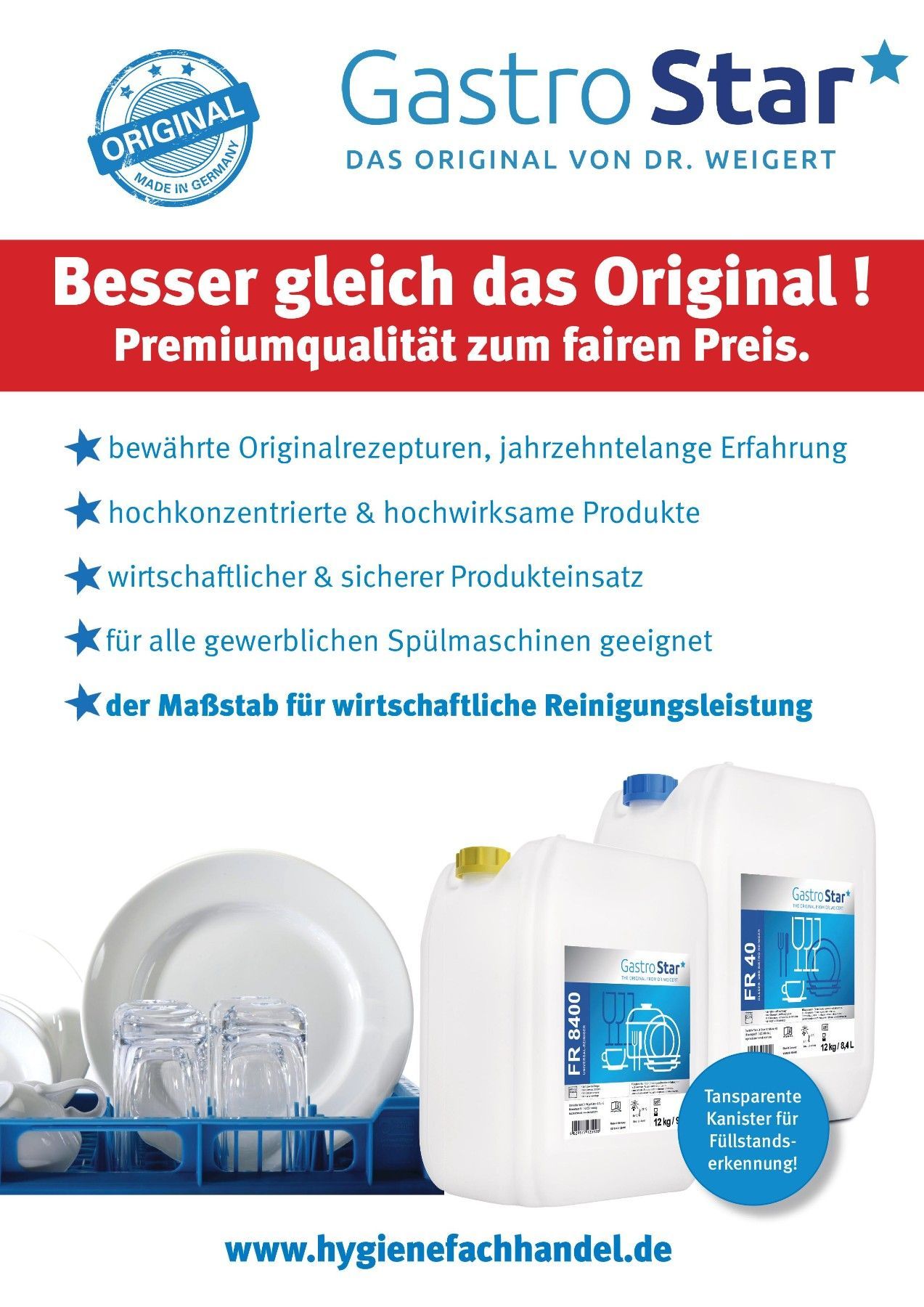 Gastro Star FR 45 Gläser Bistro Reiniger 12 Kg bei Hartwasser