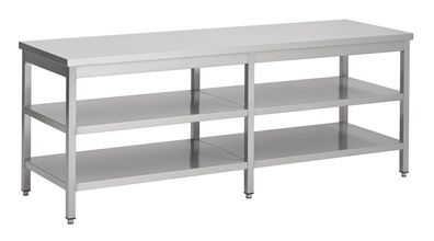 Gastronomie Combisteel Arbeitstisch mit 2 Böden aus Edelstahl 2500x600x900mm