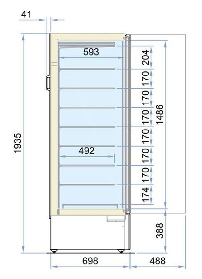 • Tiefkühlschrank Gefrierschrank Glastür Mod. EK 199 215 L 484x700x1578 Gastlando