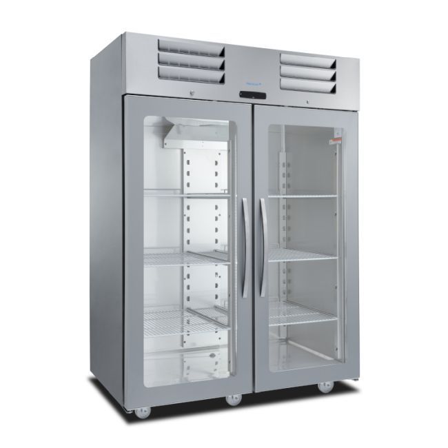 Gastronomie Gastro-Inox Kühlschrank Excel line mit 2 Glastüren 6 Roste und 1400