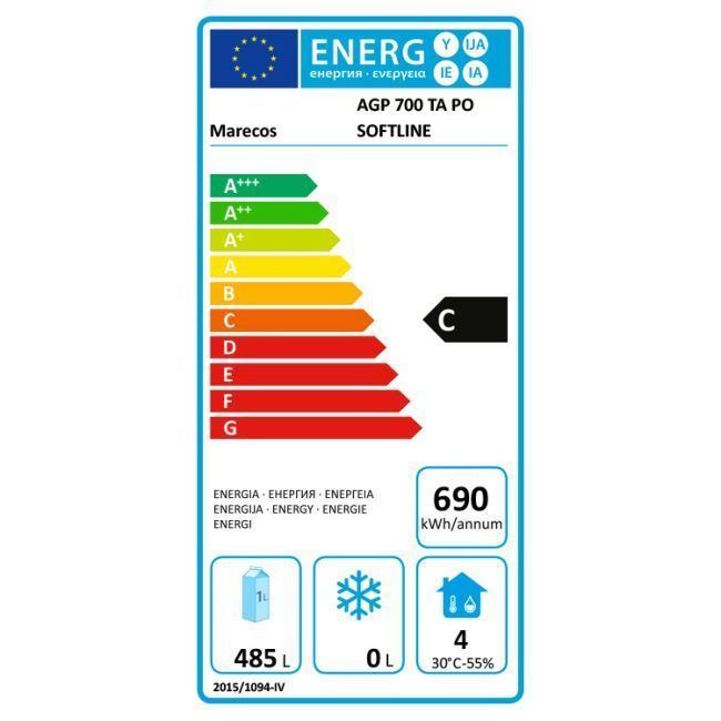 Gastronomie Gastro-Inox Kühlschrank Softline mit 1 Türe 3 Roste und 700 Liter