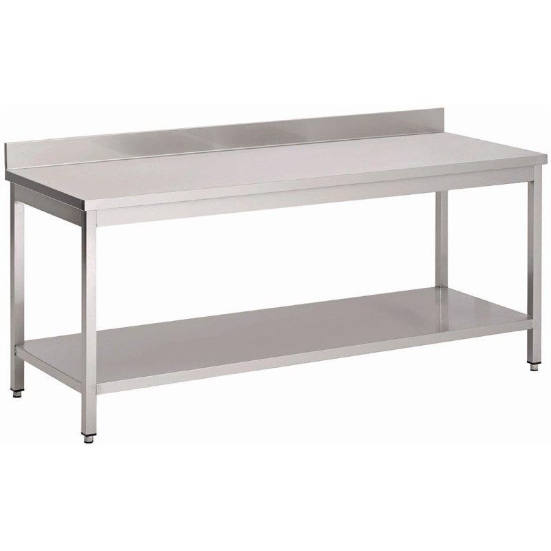• Gastronomie Gastro-Inox Arbeitstisch aus Edelstahl mit Grundboden Aufkantung 2000x