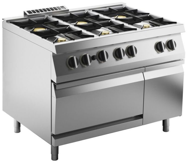 KBS Gastronomie KBS Gasherd 6 Brenner mit Gasofen 44 kW 1200x730x900 mm Piezozündung