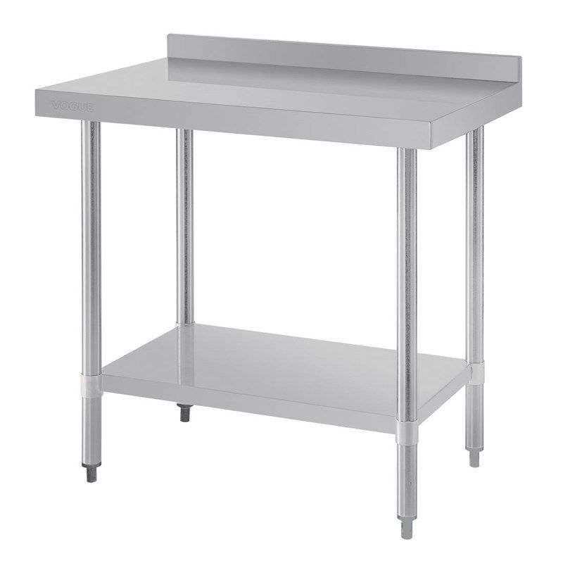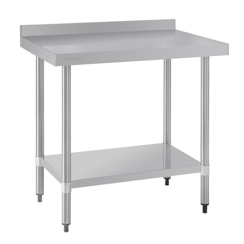 Gastronomie Vogue Edelstahl Arbeitstisch Mit Aufkantung Und Regalboden 90 X 60Cm