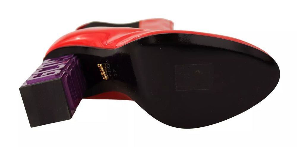 GCDS Red Leather Black Fabric Logo Heel Ankle Boots Shoes