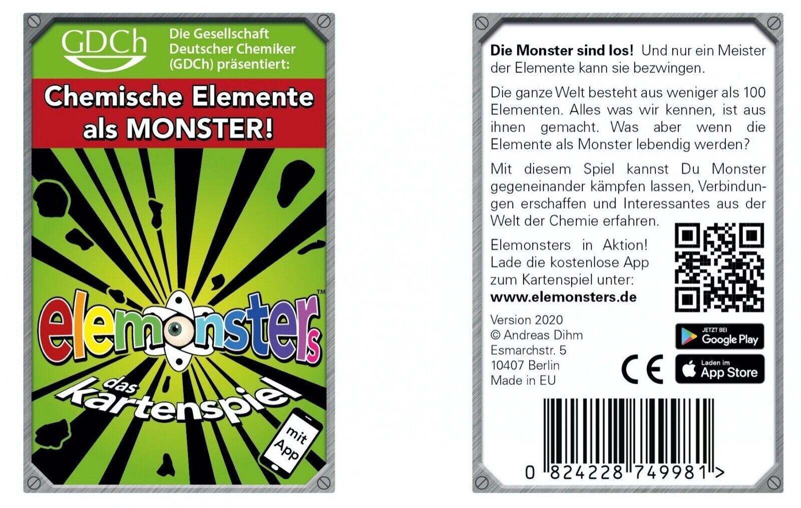 GDCh Elemonsters Chemie Elemente Lernspiel Monster Kartenspiel App Deutsch Neu