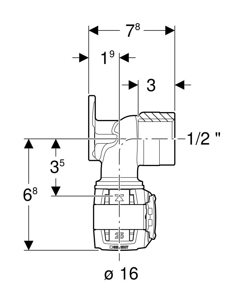 Geberit GE FlowFit Anschlusswinkel 90Gr Rg+ d16-Rp1/2 L:78mm