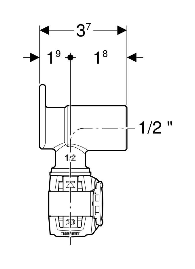 Geberit GE FlowFit Eckanschlusswinkel 90Gr Rg+ d20-Rp1/2 L:36mm