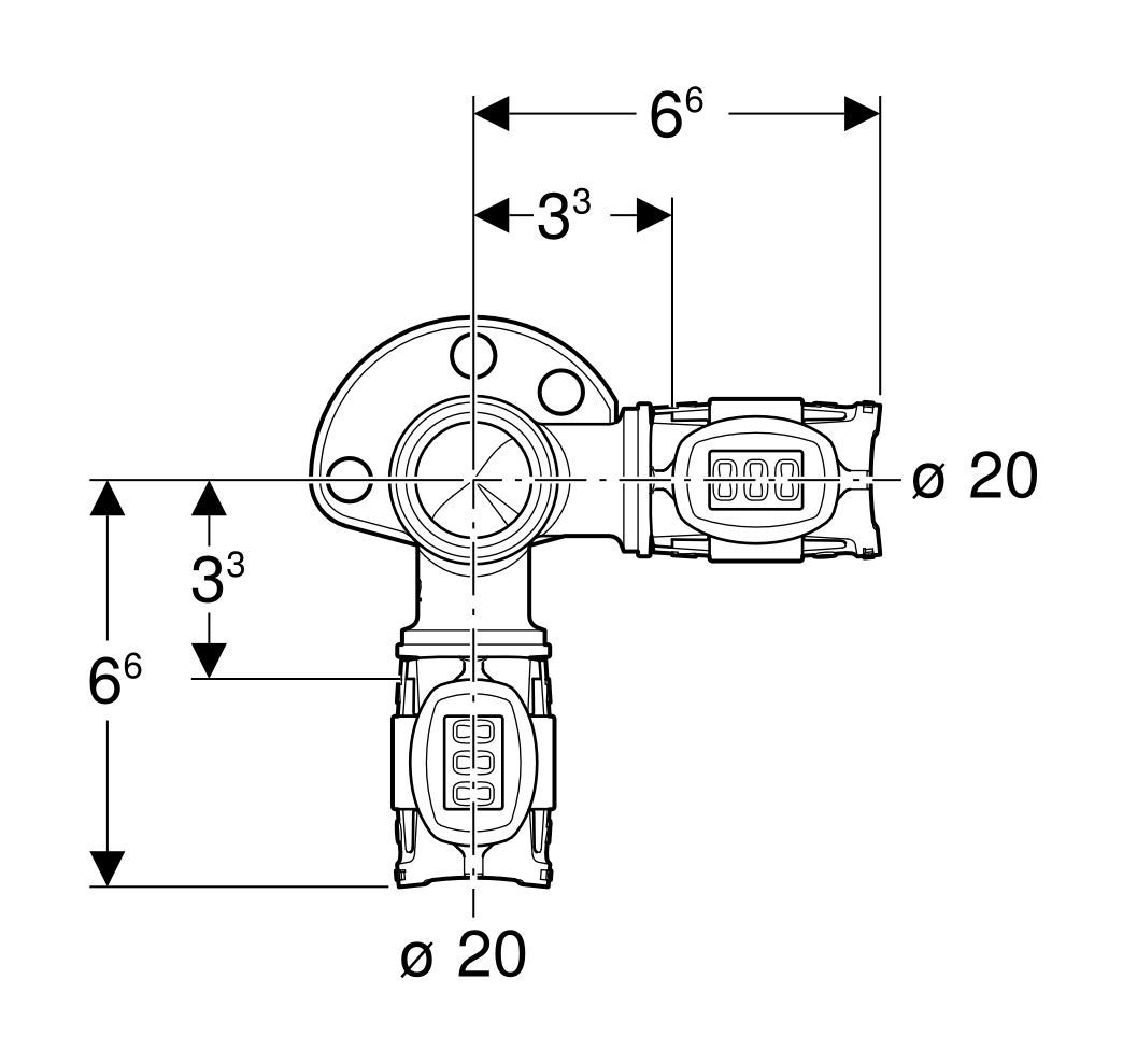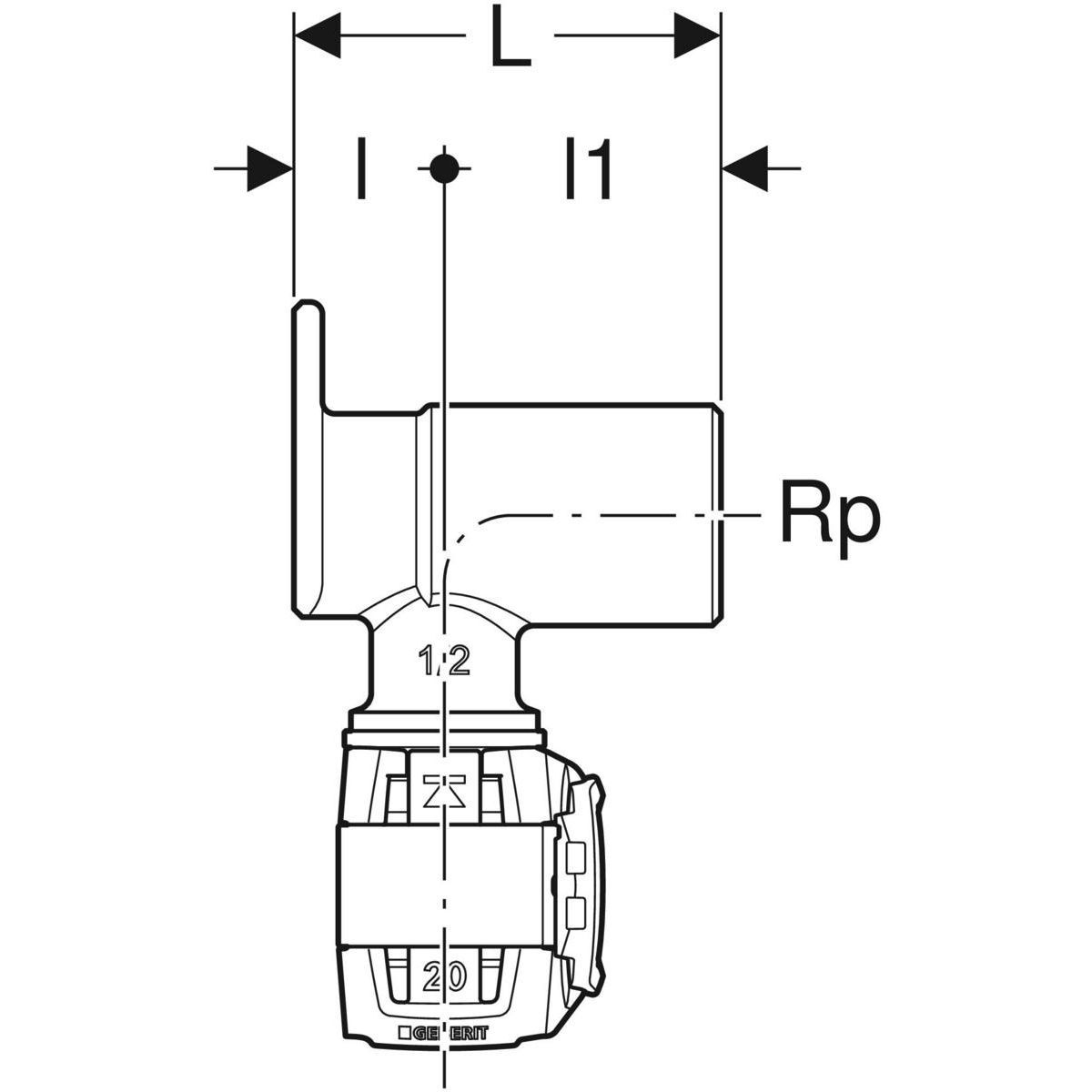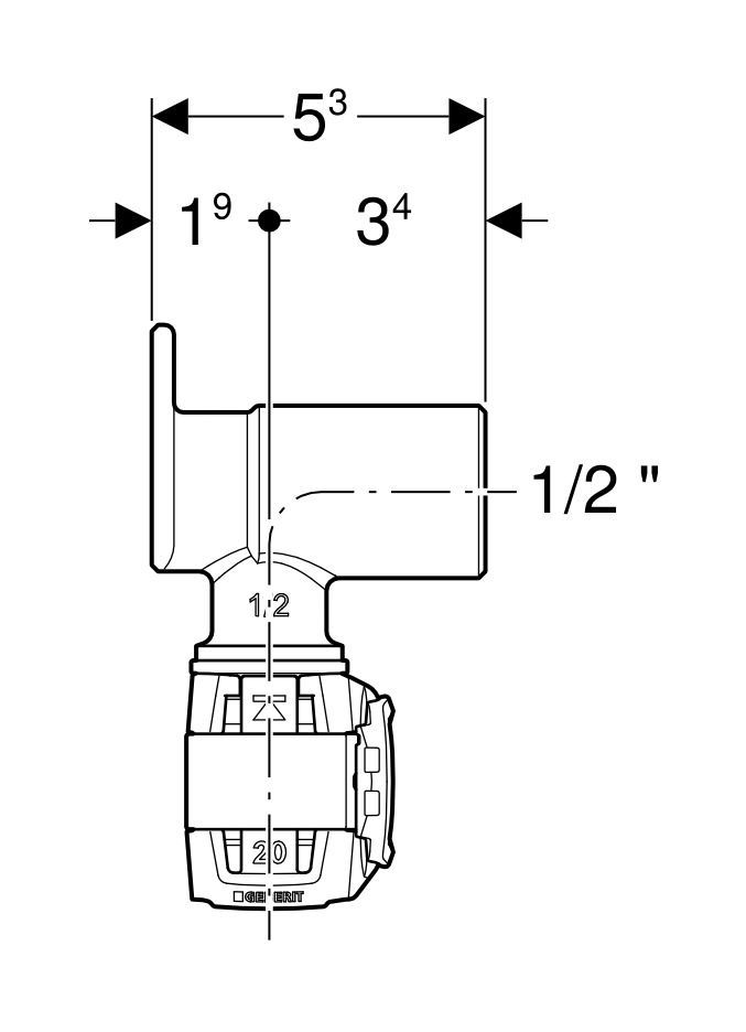 Geberit GE FlowFit Eckanschlusswinkel 90Gr Rg+ d20-Rp1/2 L:52mm