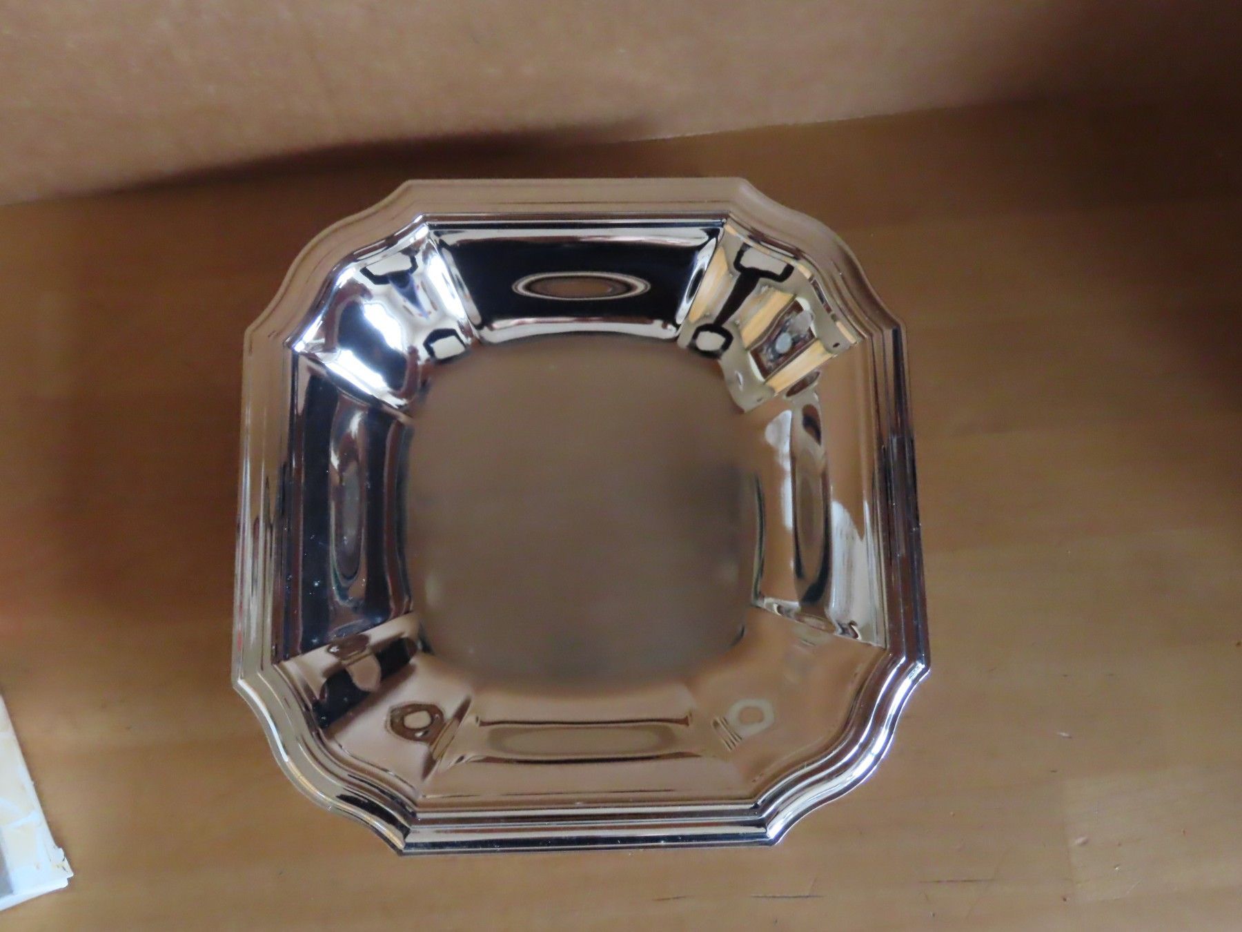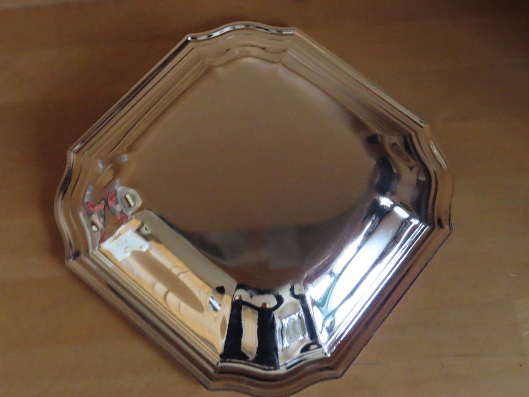 war nicht im Gebrauch - Maße ca. 21,5 cm x ca. 21,5 x ca. 3 cm hoch Innenmaß ca. 12,5 cm x ca. 12,5 cm Material: Metall NICHT magnetisch leicht verschmutzt verstaubt, Karton verformt Waren nicht im Gebrauch