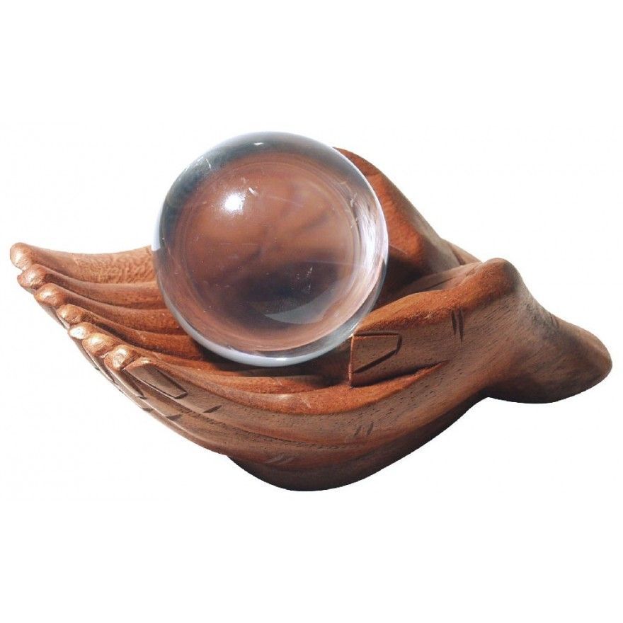 Saraswati Gebende HAND Holz braun 15 cm Holzfigur Statue Skulptur Holzschale Kugelhalter