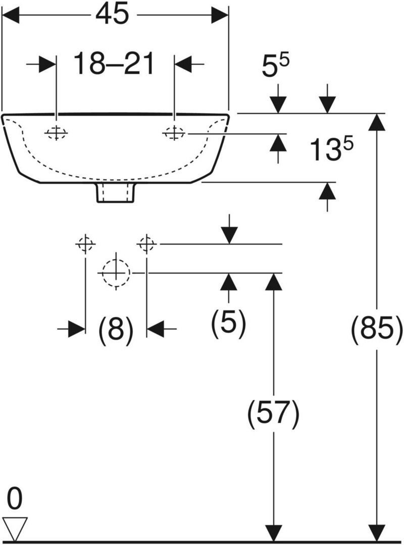 Geberit Geberit Handwaschbecken Renova mit HL mittig, mit ÜL 450x360mm weiß