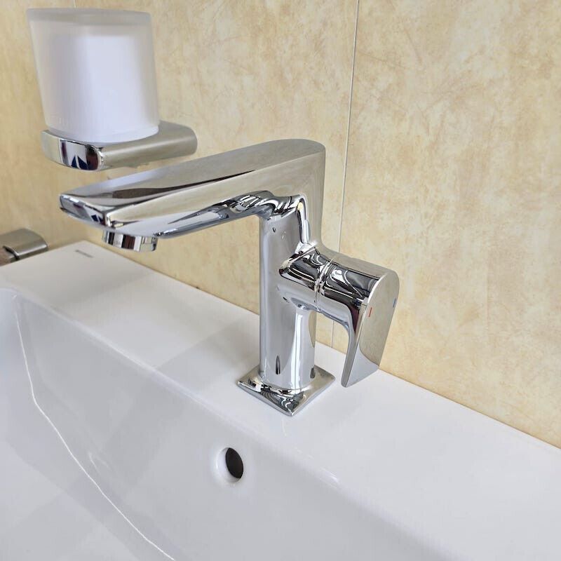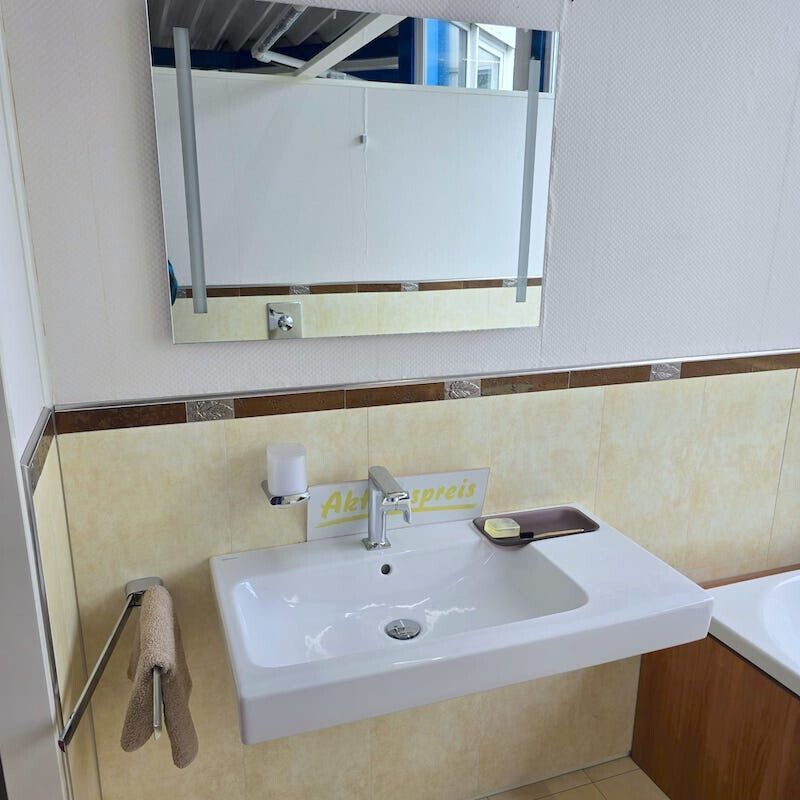 Geberit iCon Waschtisch 75cm weiß + Lichtspiegel, Armatur, Ausstattung