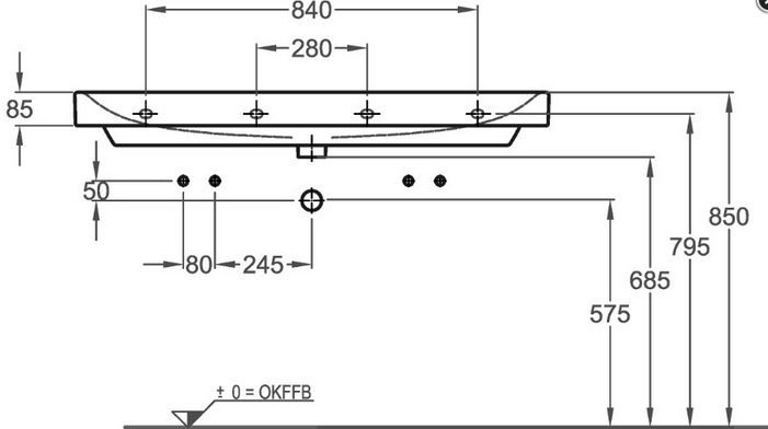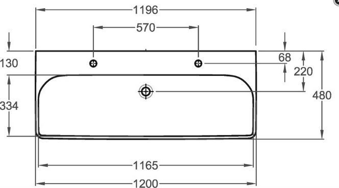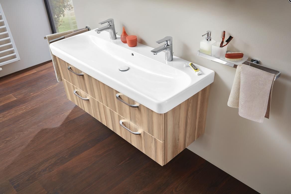 Geberit M100 E-Waschtisch 1200x480mm weiß eckige Form 2 Hahnlöcher