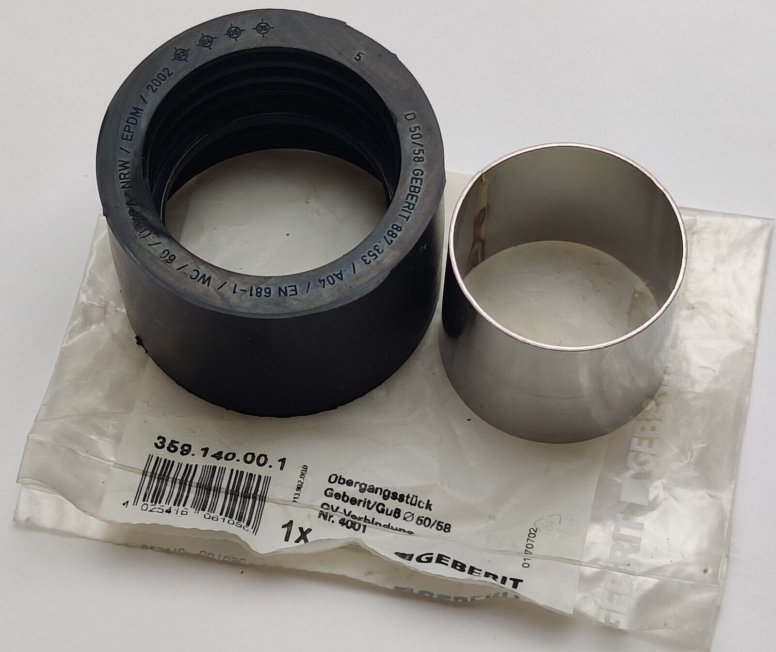 Geberit Geberit PE Übergangsmanschette auf Guss, mit Stützring Ø50/58mm 359.140.00.1