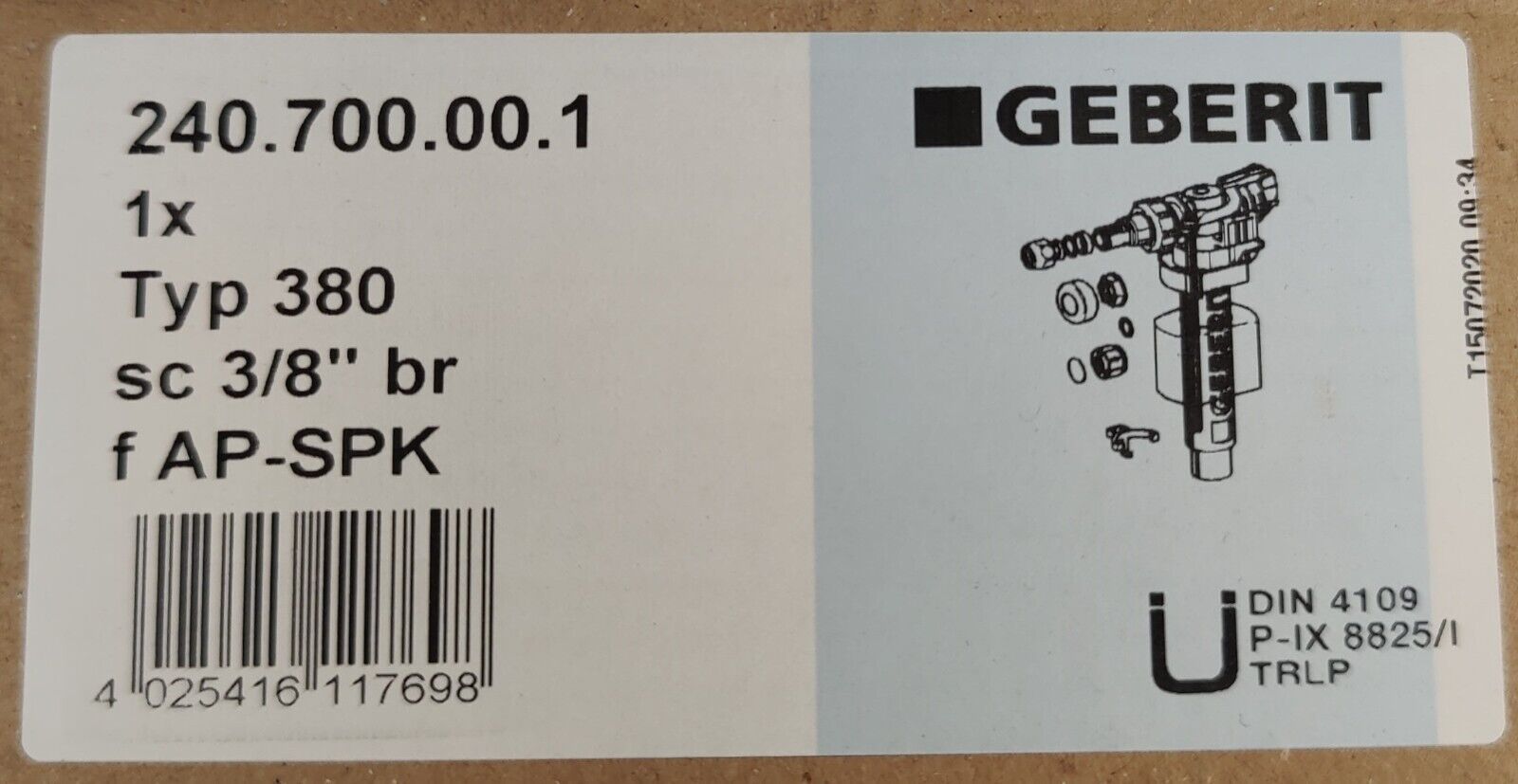 Wir bieten an: Geberit Typ 380 Füllventil Wasseranschluss seitlich, 3 8 , Nippel aus Messing Artikel-Nr.: 240.700.00.1 Maße: Gewinde 3 8Euro Tiefe 112 mm Breite 61 mm Höhe 243 mm Modell: Füllventil Wasseranschluss Material: Kunststoff, Nippel aus Messing Fließdruck: 10 Euro 1000 kPa Leitungsgeräusch... Mehr