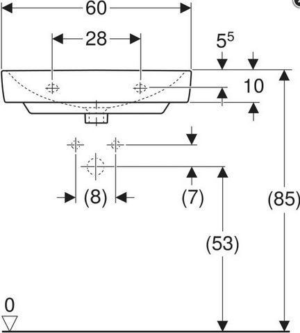 Geberit Geberit Waschtisch Renova Compact mit Hahnloch, mit ÜL 600x370mm weiß