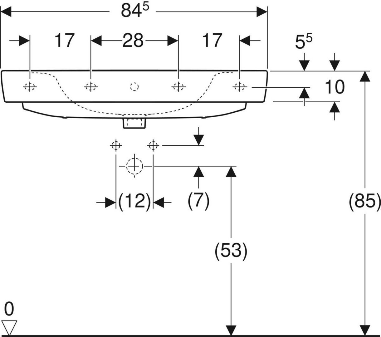 Geberit Geberit Waschtisch Renova Plan mit Hahnloch, mit ÜL 850x480mm weiß