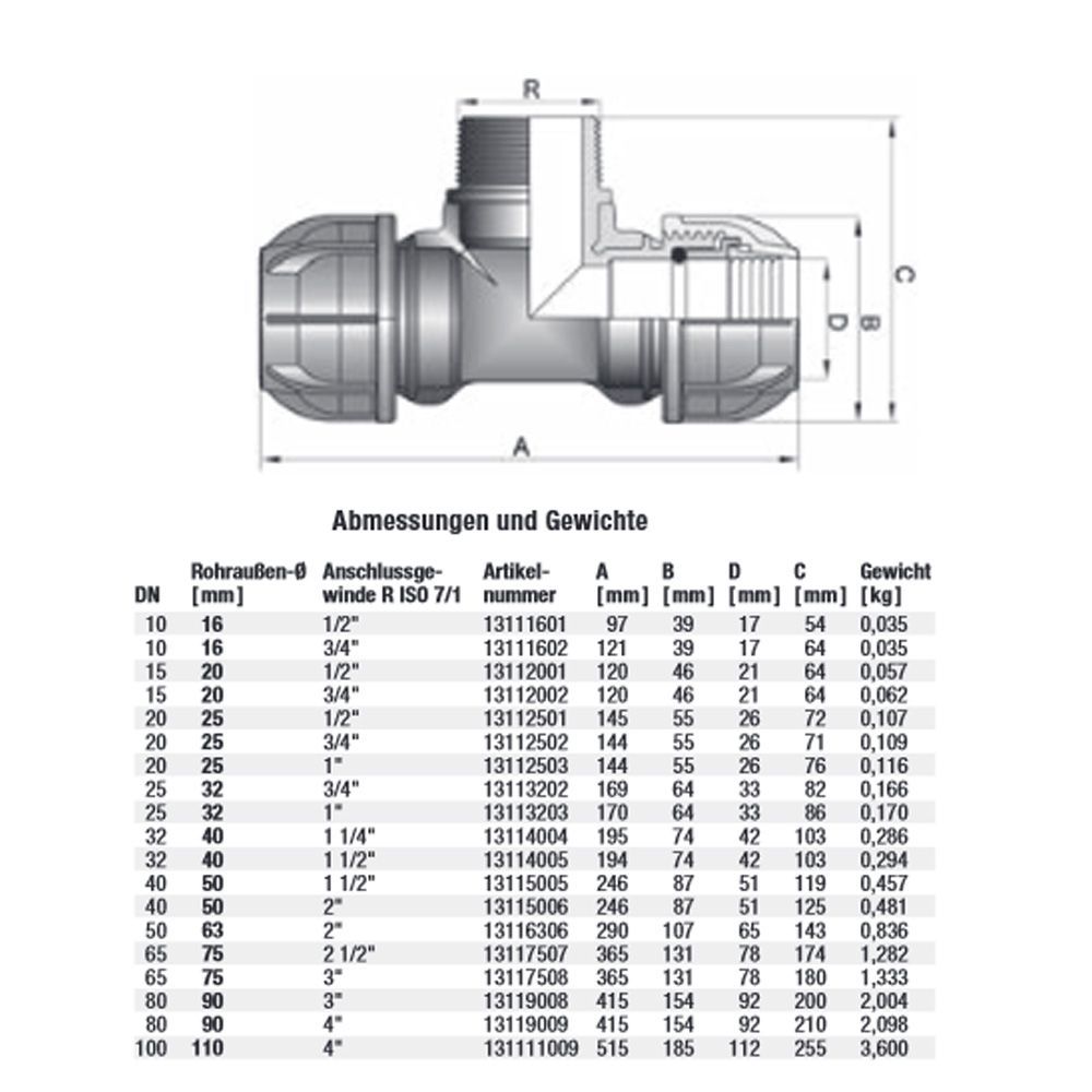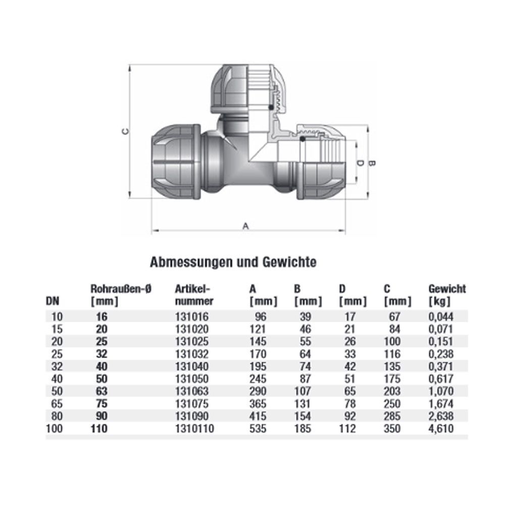 Gebo Plast PE Klemmfitting Klemmverbinder Winkel T-Stück Verbinder Übergang
