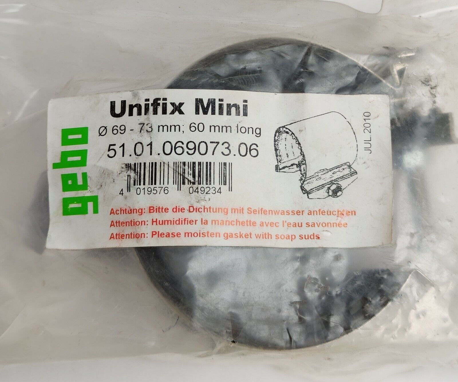 Gebo Unifix Mini Dichtband Spannbereich 69 - 73 mm Baulänge 60 mm, EPDM Dichtung