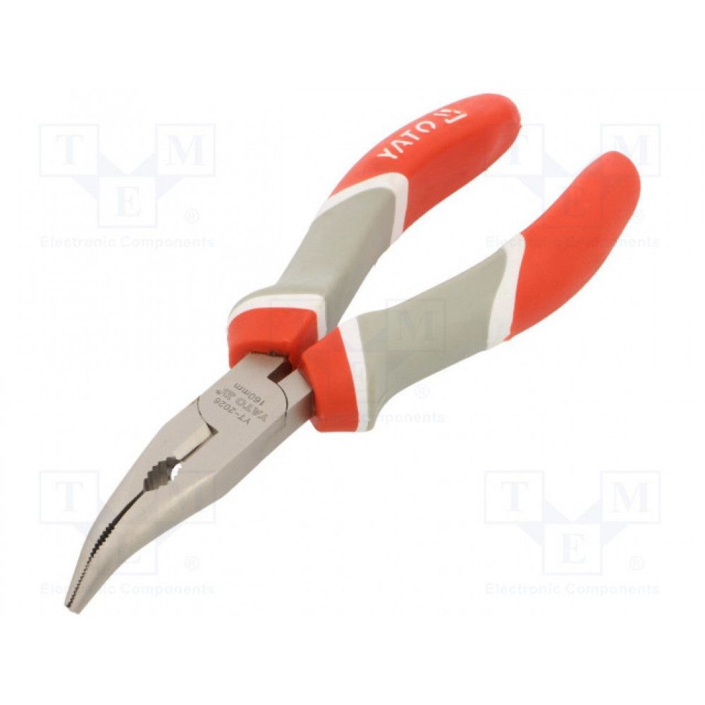 Gebogene Flachrundzange, Telefonzange, Spitzzange 160mm mit Schneide