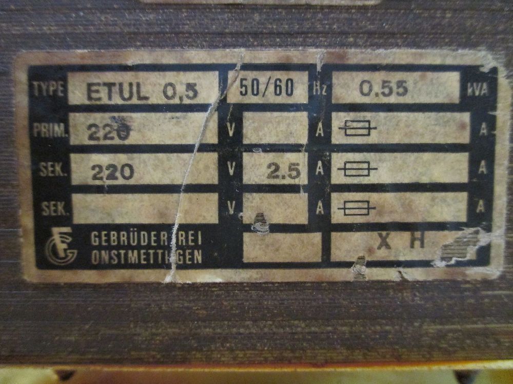 Gebrüder Frei Transformator ETUL 0,5 Trafo pri.220V sek.220V 550VA T9/676