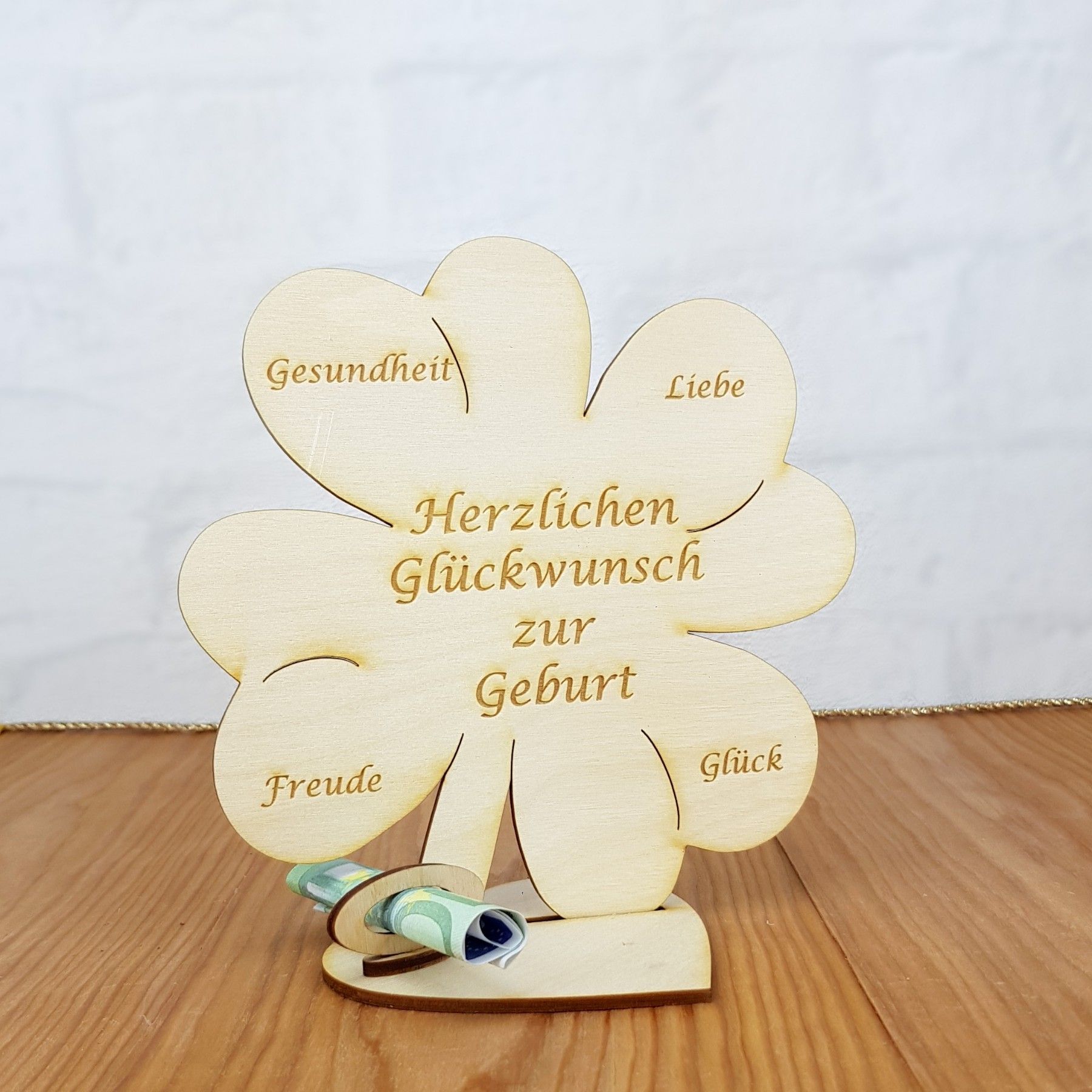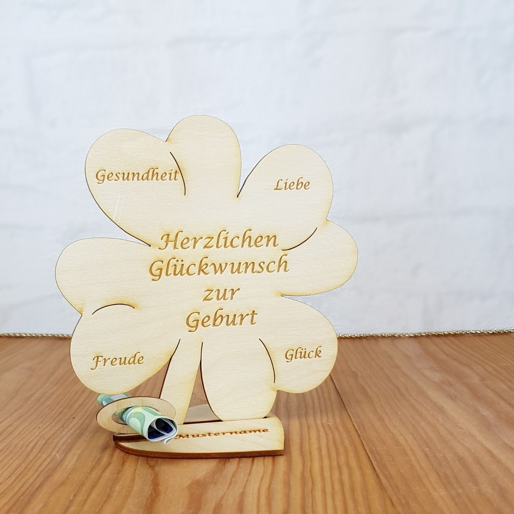Geburt, Baby Kleeblatt Geldgeschenk 16cm Glückwünsche, Wunschgravur