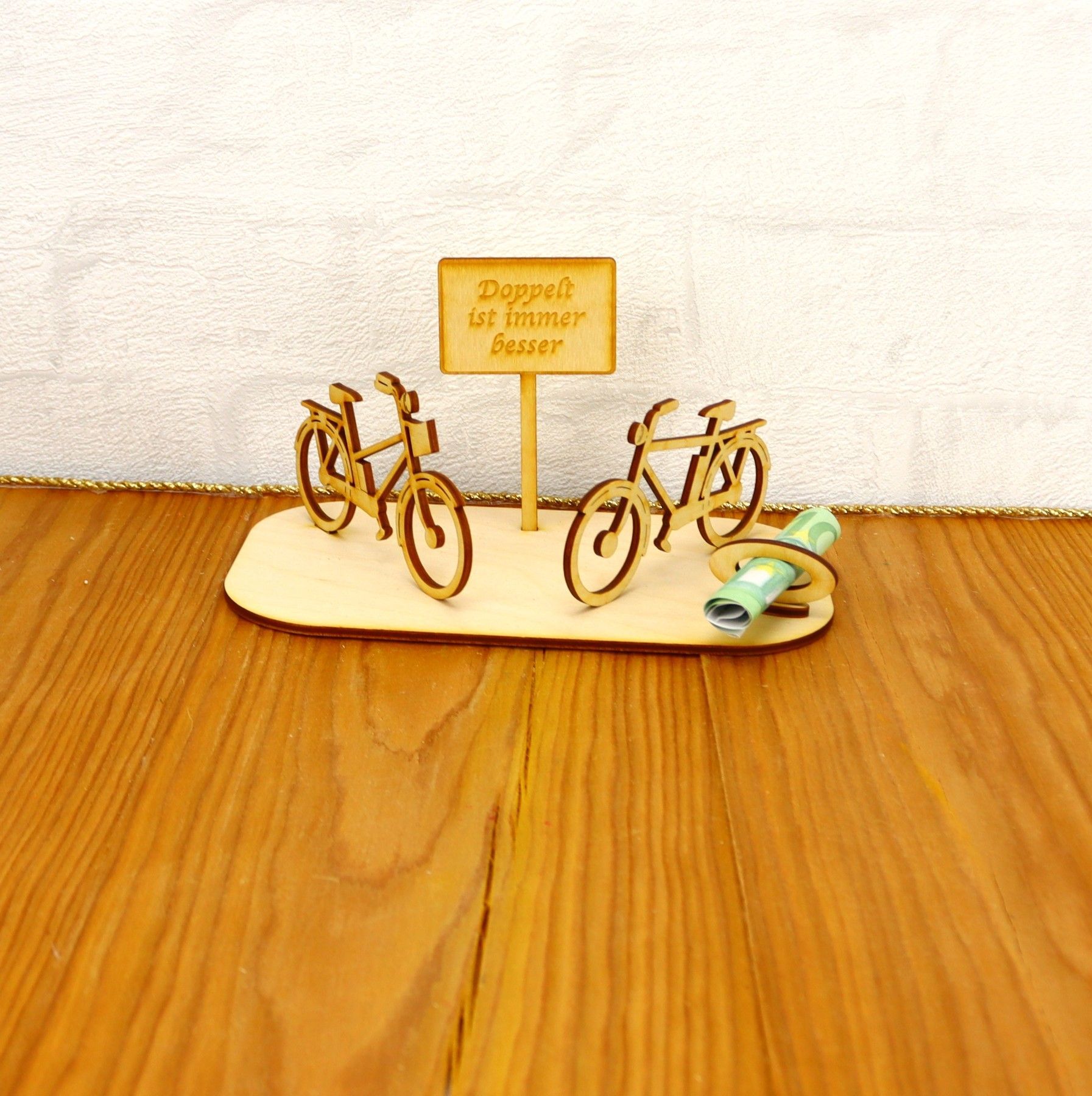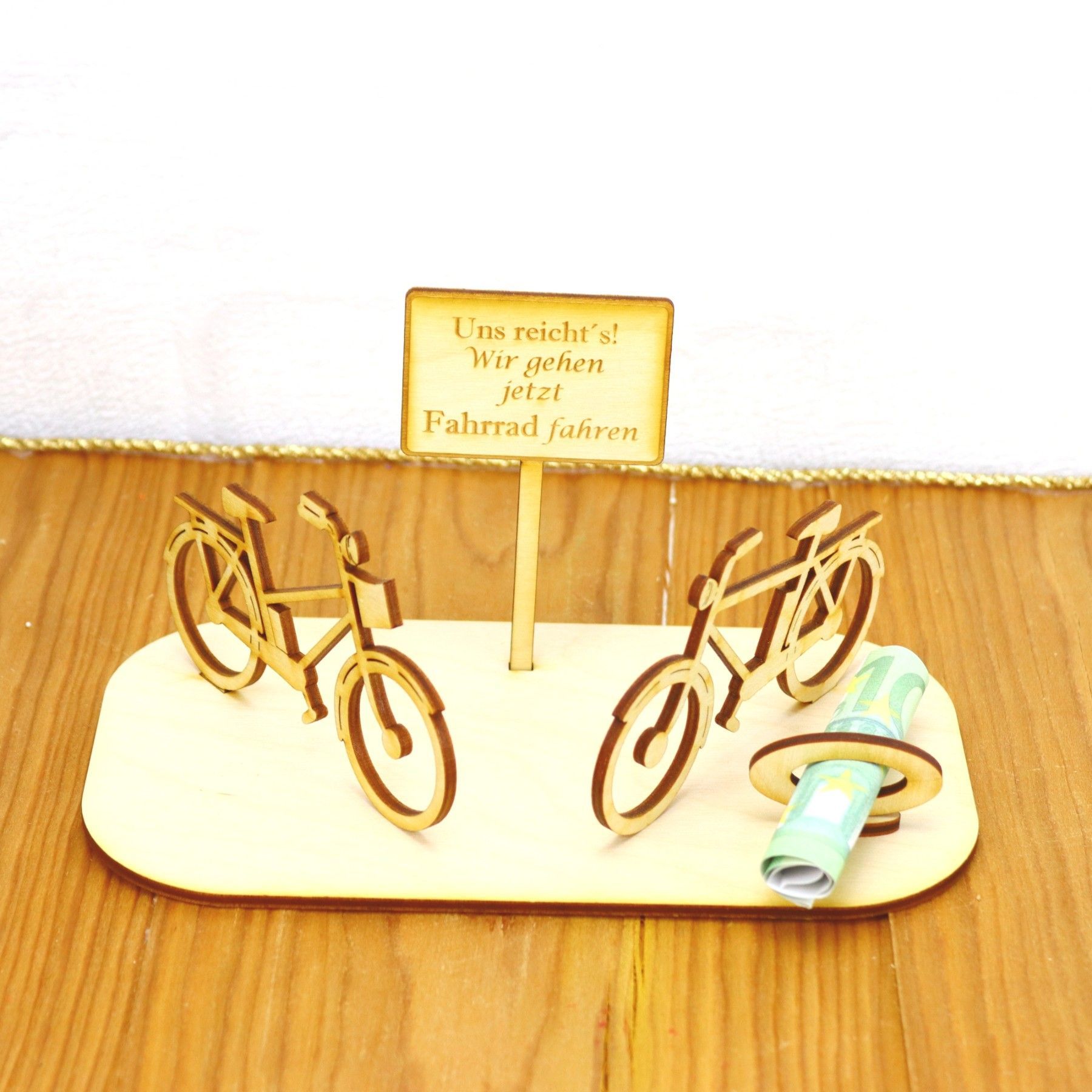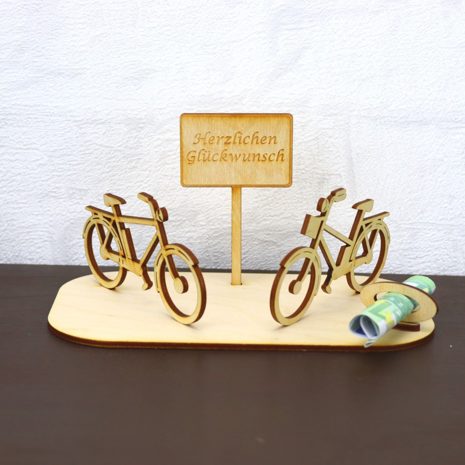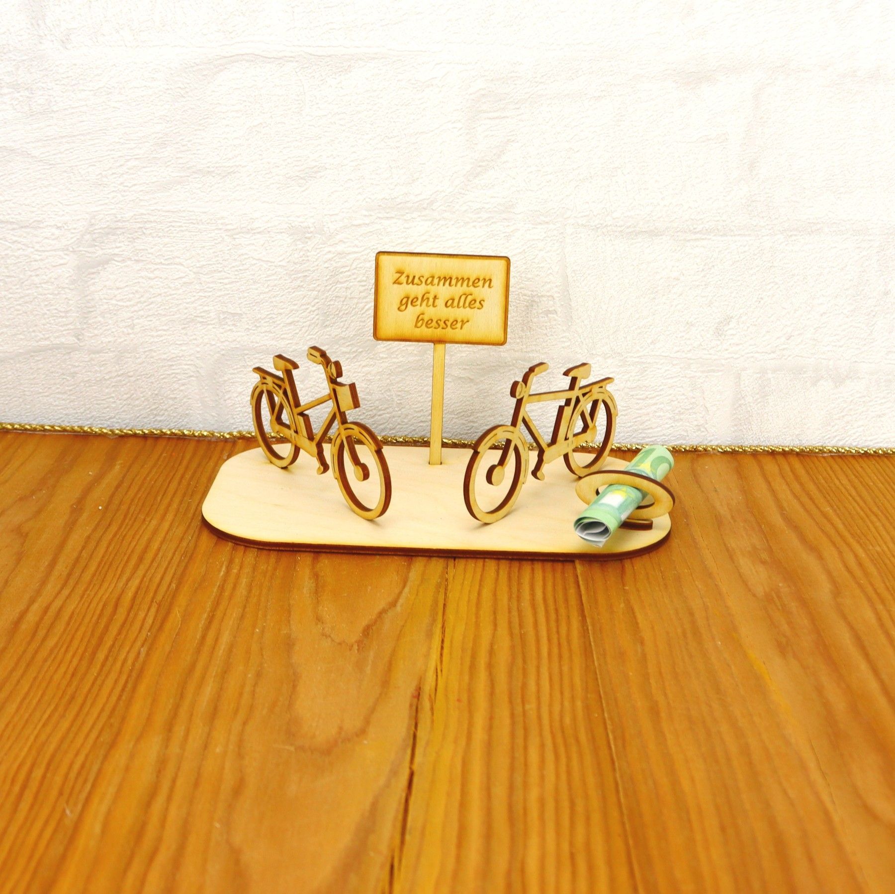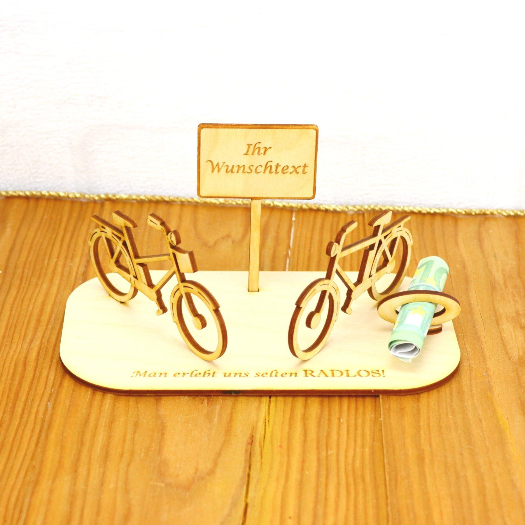 • Geburtstag Fahrräder Geldgeschenk für Pärchen Holz mit Personalisierung Deluxe Radlos
