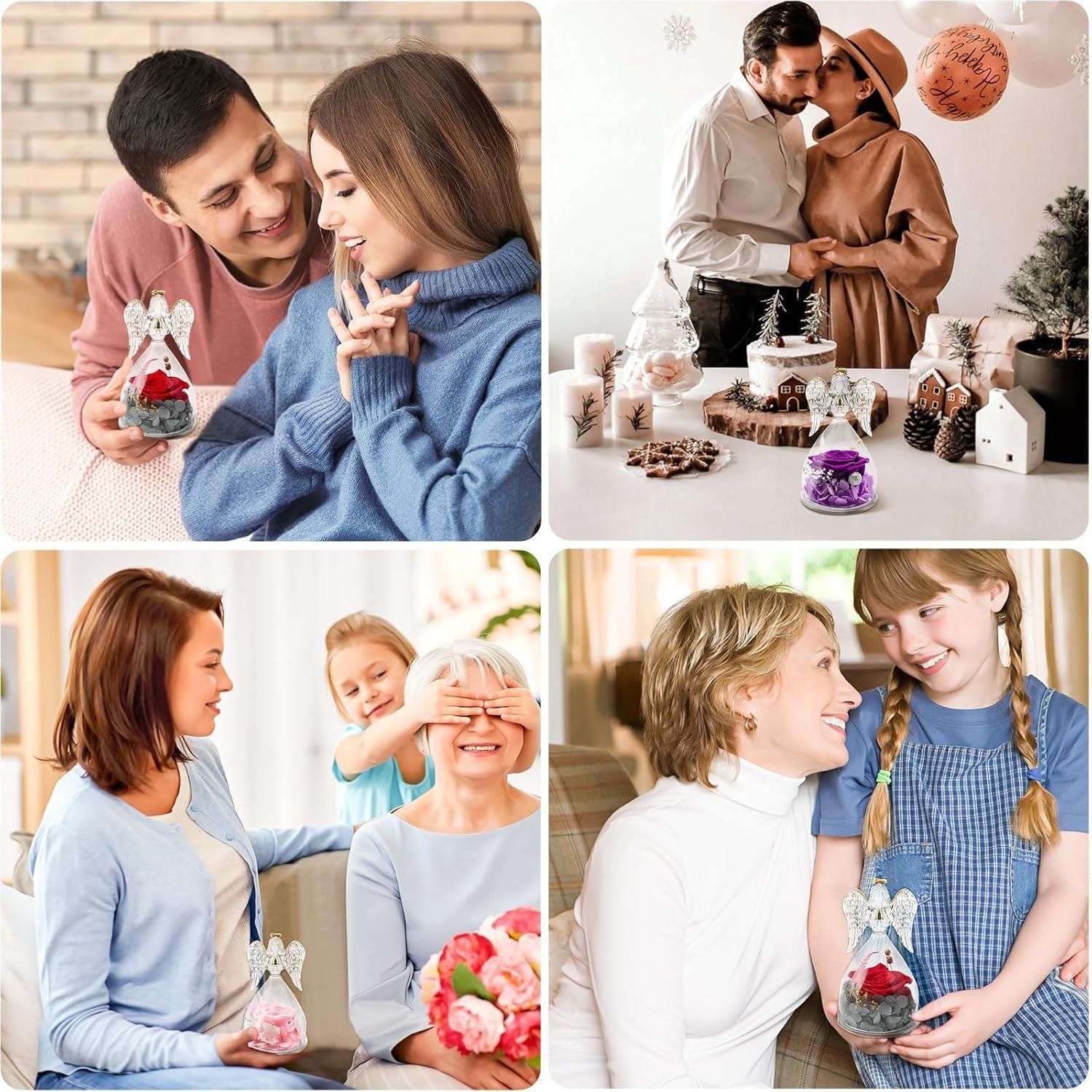 Geburtstagsgeschenk für Frauen Ewige Rose in Engel Figur für Mutter Oma