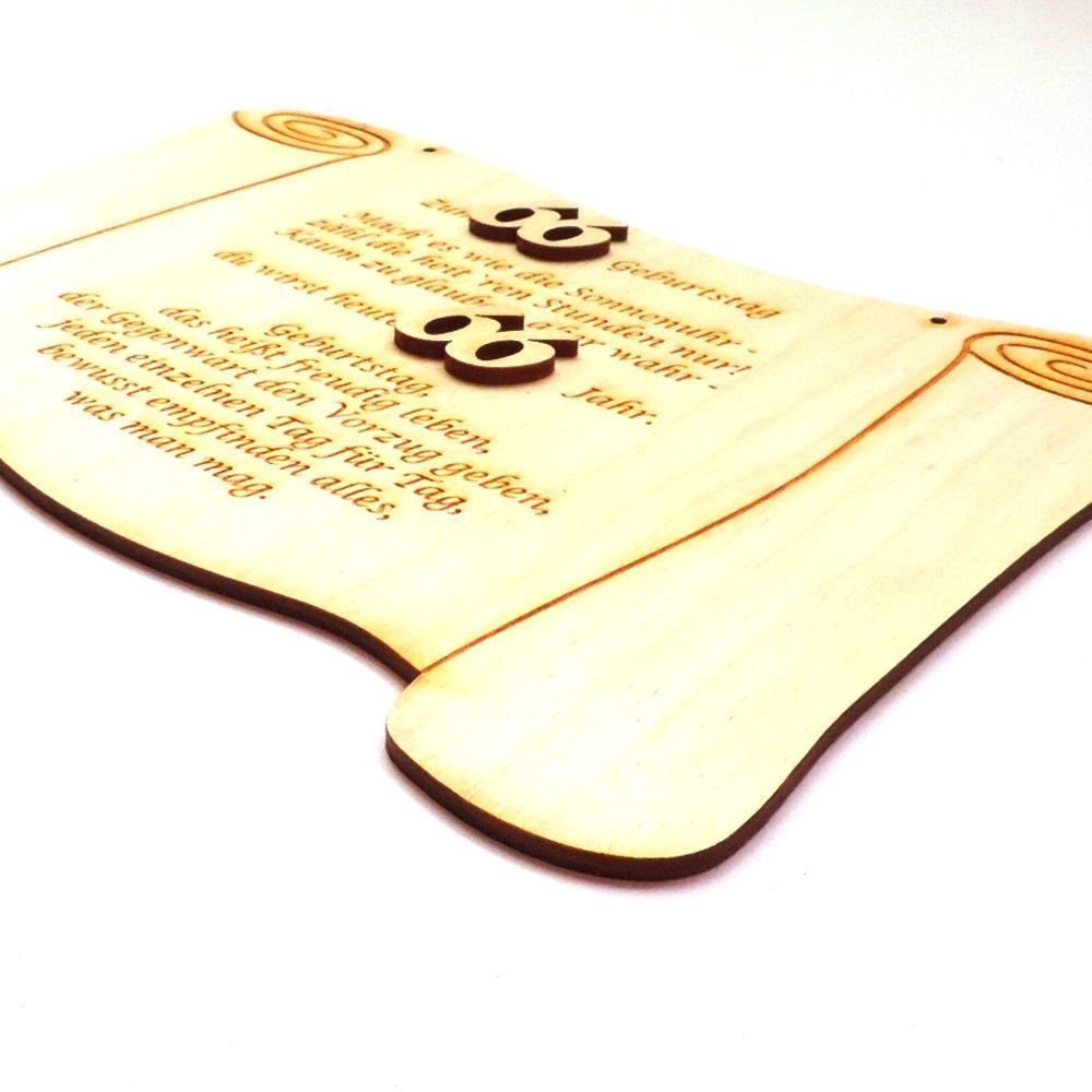Geburtstagsgeschenk Glückwünsche auf einer Holztafel graviert zum 66. Geburtstag SU