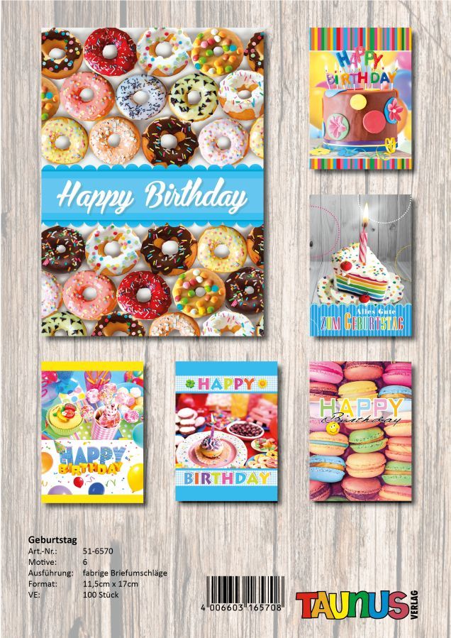 Geburtstagskarten - 100 Stück - 6 Motive