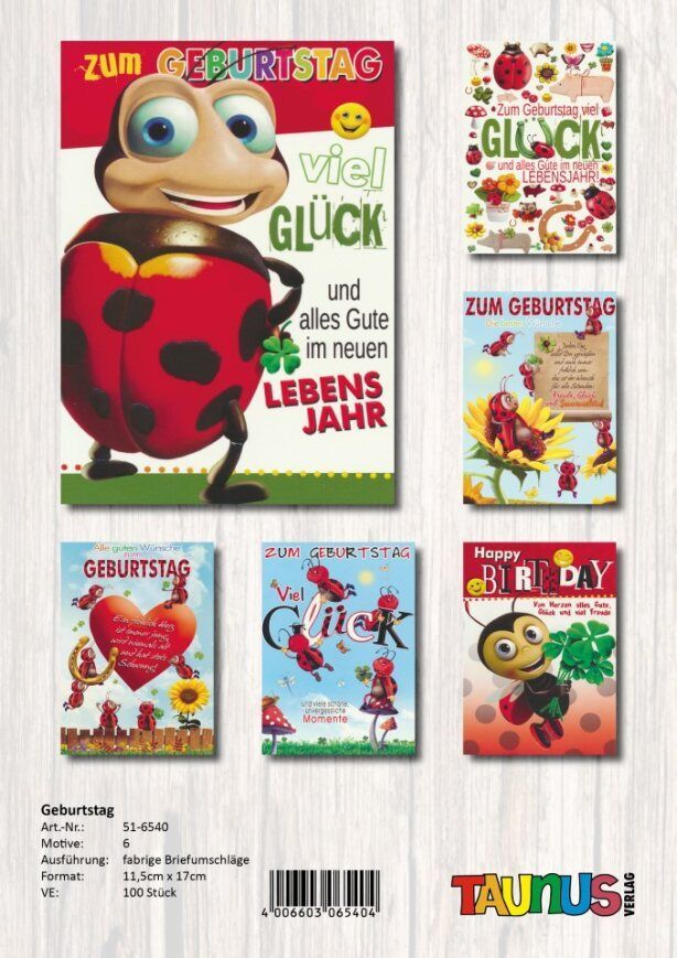 Geburtstagskarten Marienkäfer - 100 Stück - 6 Motive