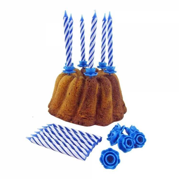 Geburtstagstortenkerzen - blau -12 Stück + Halter