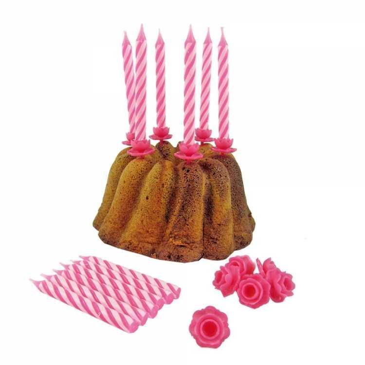Geburtstagstortenkerzen - rosa -12 Stück + Halter