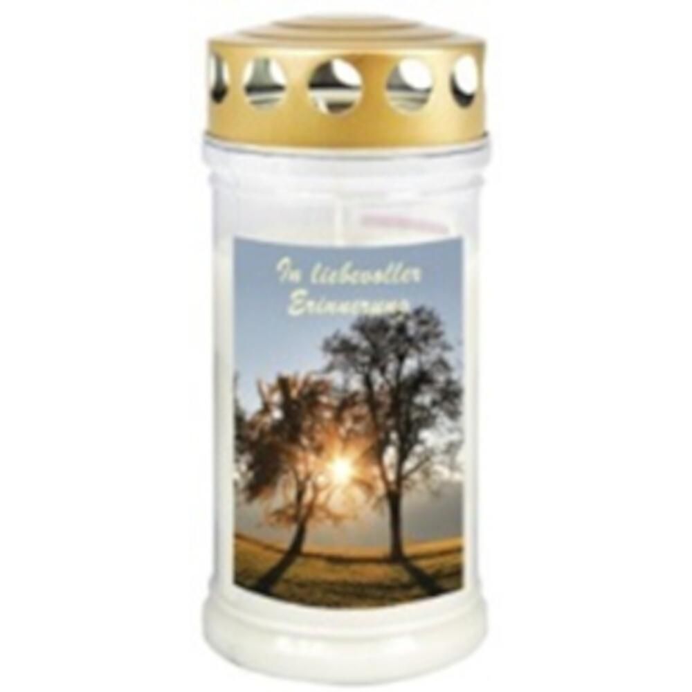 Gedenkkerze klein, Baumpaar/In liebevoller Erinnerung mit Golddeckel, Brenndauer bis