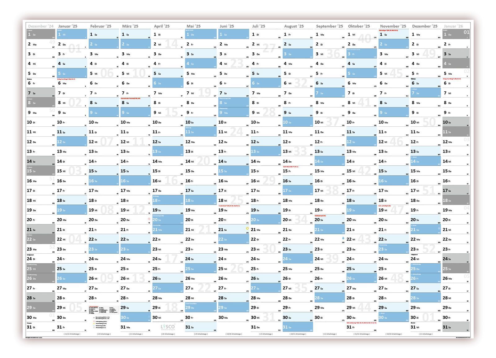 Gefaltet XXL Classic2 Wandkalender DIN A0 2025 Wandplaner blau