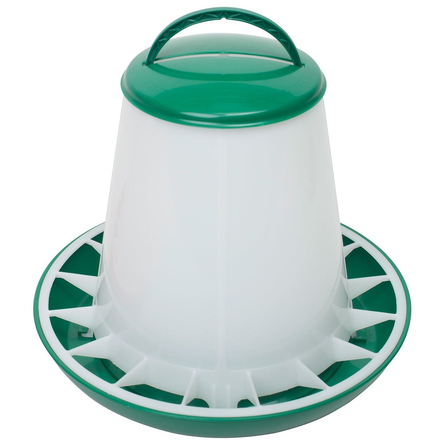 Geflügel-Futterautomat 3kg grün, mit Deckel und Aufhängung, Futtertrog für Hühner