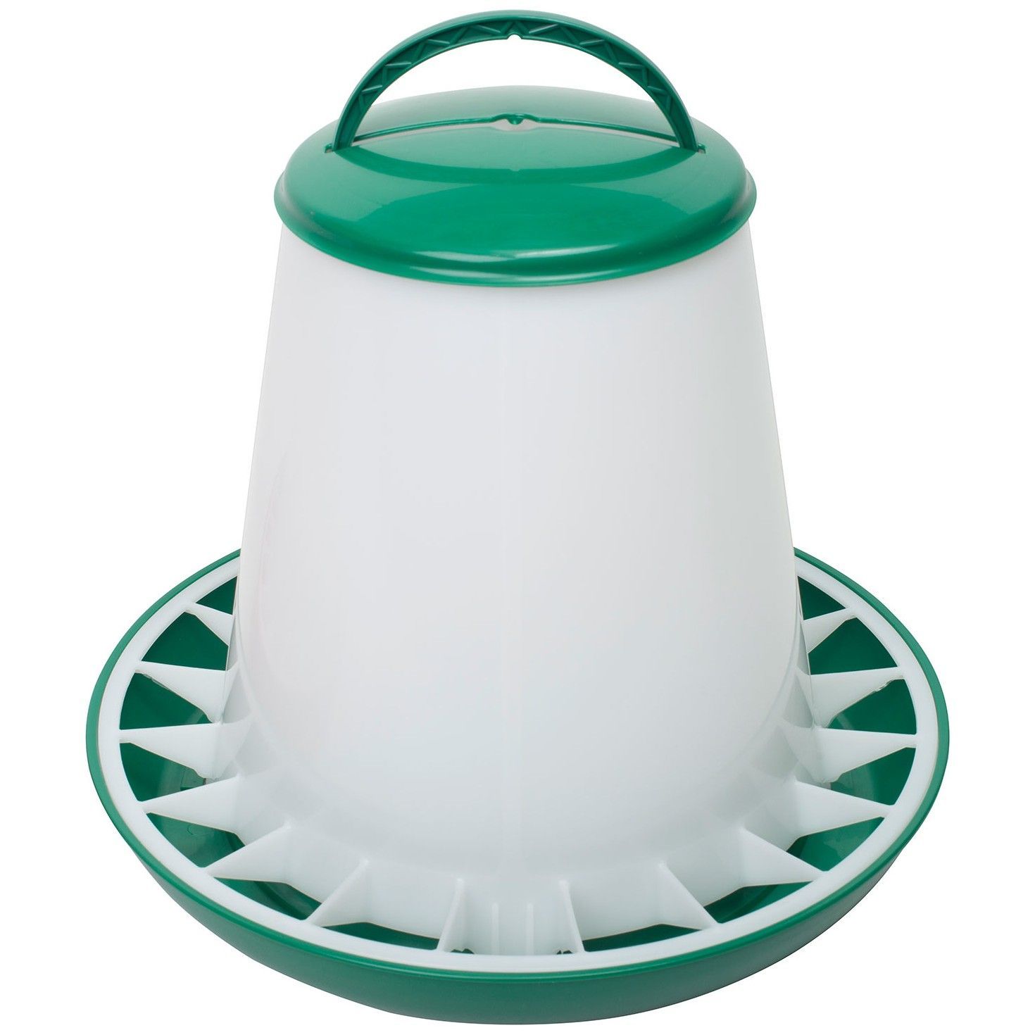 Geflügel-Futterautomat 6kg grün, mit Deckel und Aufhängung, Futtertrog für Hühner
