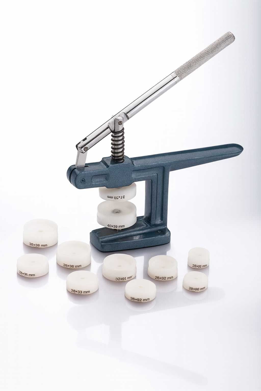 Gehäuseschließer Einpresswerkzeug für Armbanduhrengehäuse und Gläser Pressstock