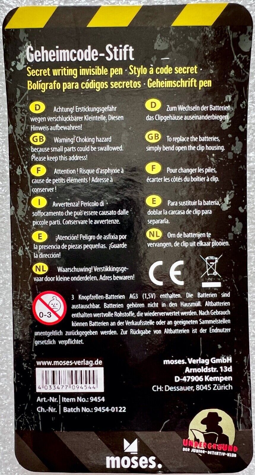 Moses. Geheimcodestift Moses Der Junior Detektiv Klub UV Licht mit Stift Kinderspiel