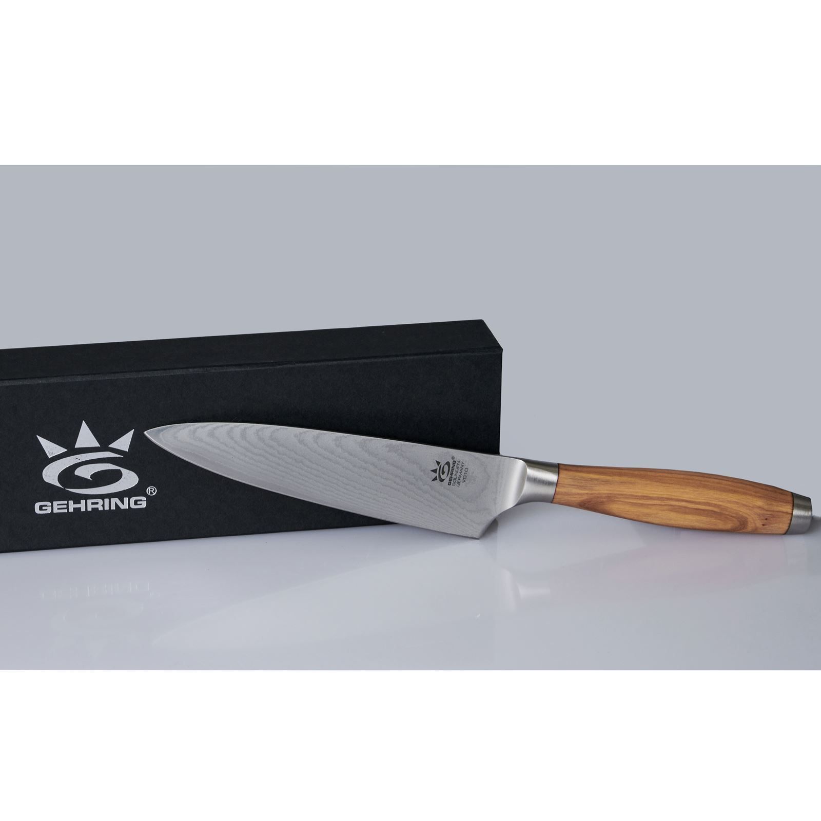 Gehring Damast Kochmesser 15 cm Damastmesser mit Holzgriff & breiter Klinge