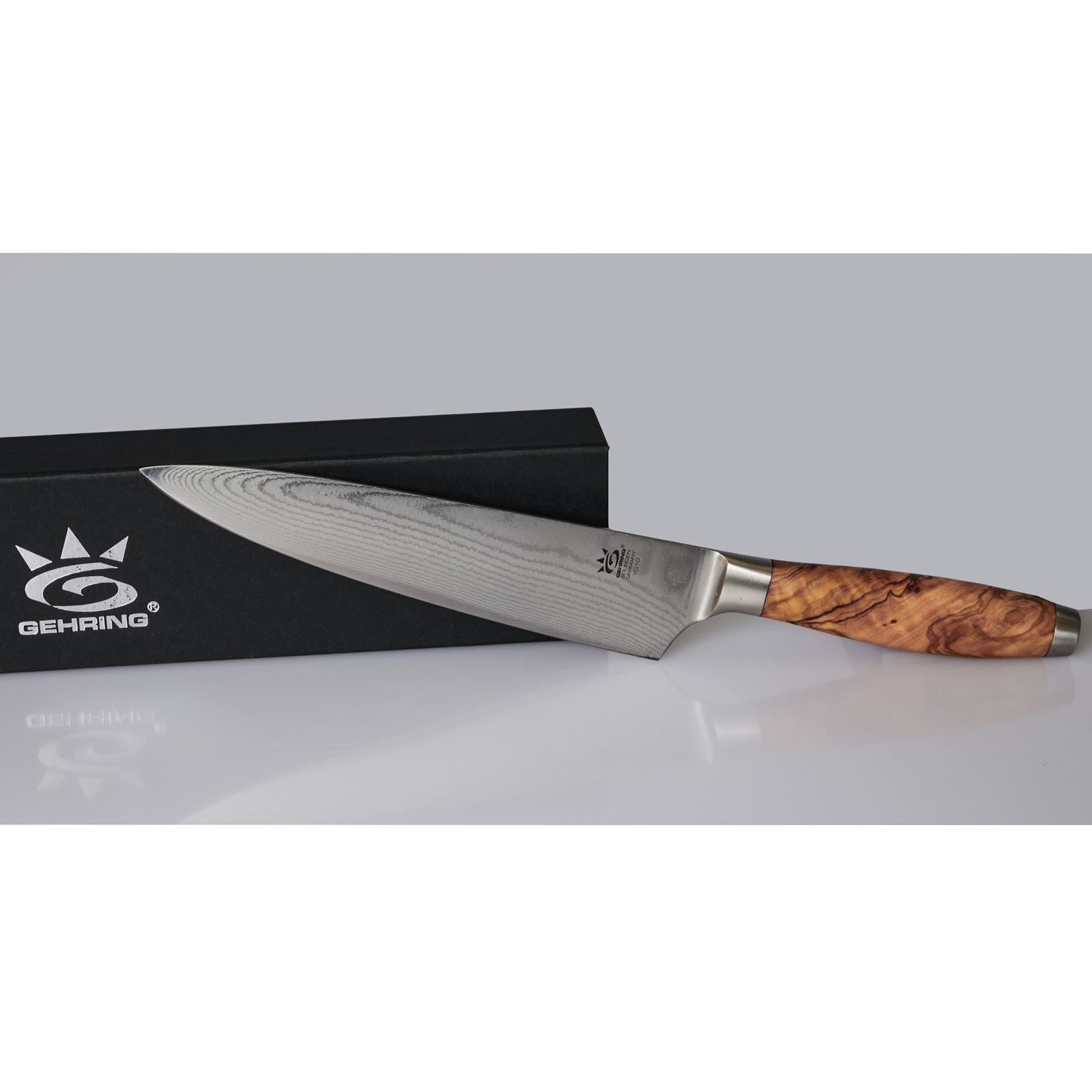 Gehring Damast Kochmesser 20 cm Damastmesser mit Holzgriff & breiter Klinge