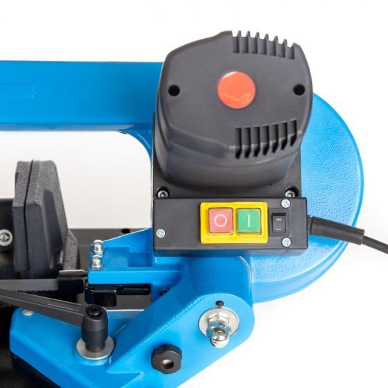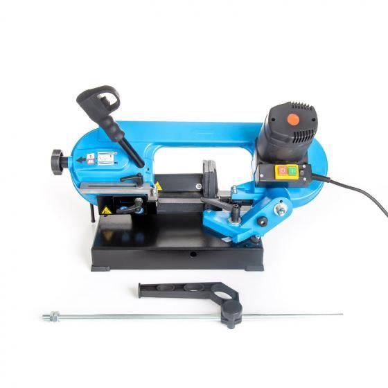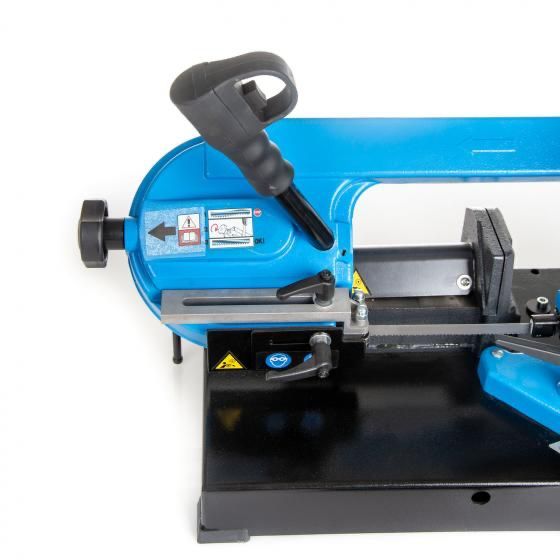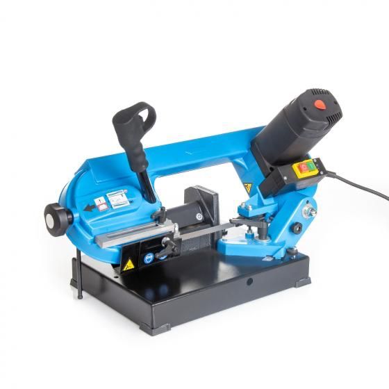 850 W 230 V Schnittwinkel 0-45° 60 - 80 m min - SBWXXX970130 Gehrungs-Metallbandsäge Ideal zum Sägen von Stahl, Aluminium, Kupfer, PVC und Teflon Stufenlose, elektronische Geschwindigkeitsregelung von 60 - 80 m min Sägeband: 1335 x 12,7 x 0,64 mm Der Sägebügel ist von 0-45° schwenkbar um auch winkel