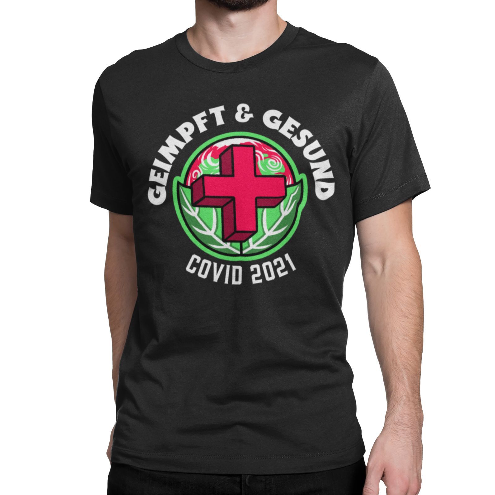 Geimpft Gesund Solidarisch 2021 T-Shirt Herren Virus Demo Gesund XS - XXXL
