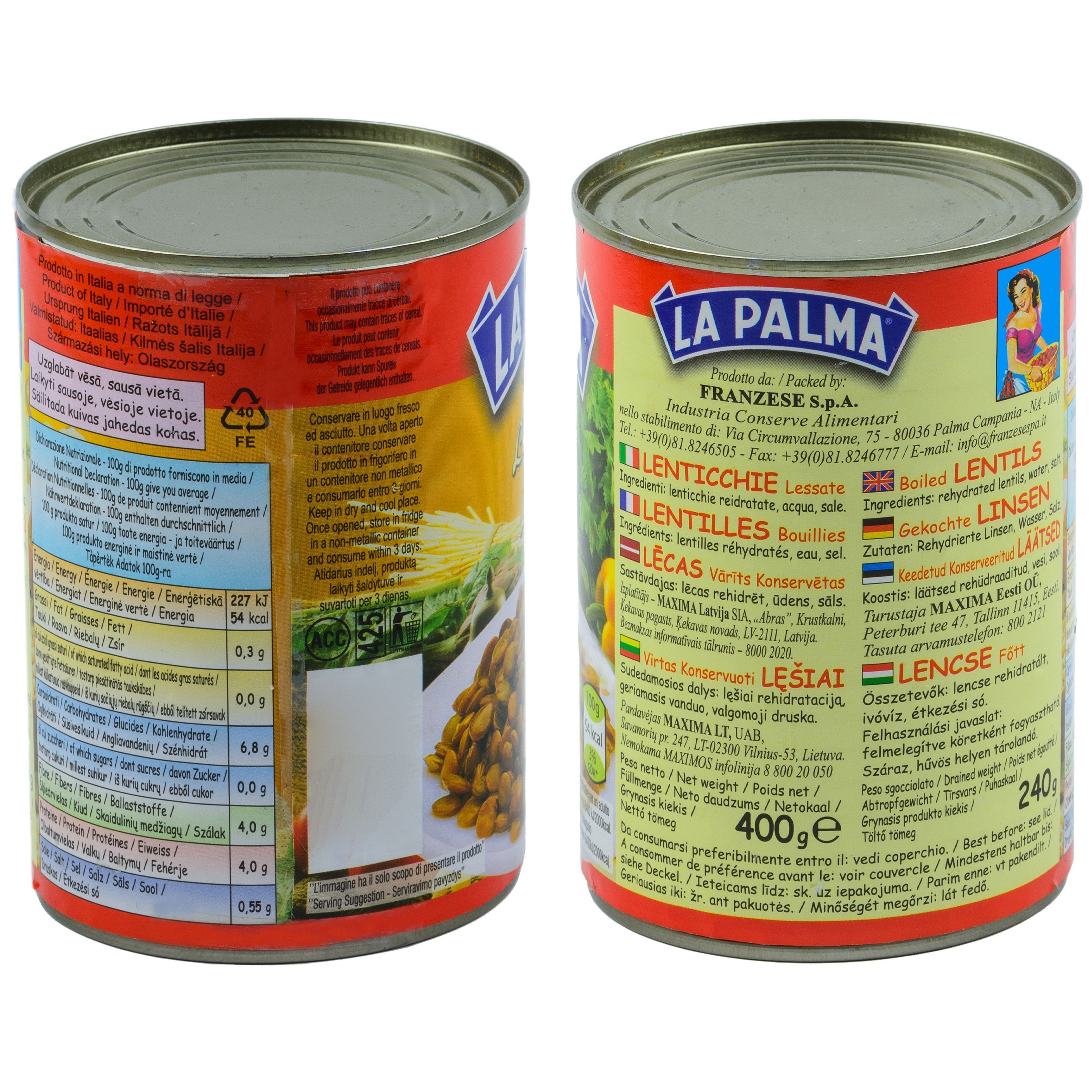 gekochte braune Tellerlinsen Dose 6x 420ml ATG 240g Linsen La Palma