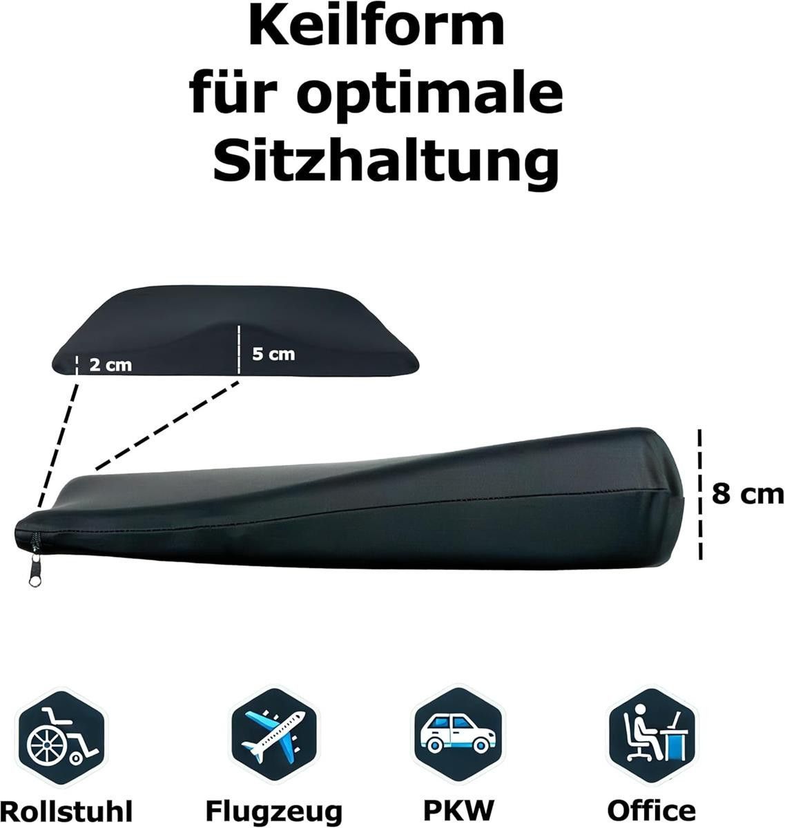 Gel Keilkissen Sitzkissen Geleinlage + Visco Sitzpolster Kissen für Bürostuhl Auto
